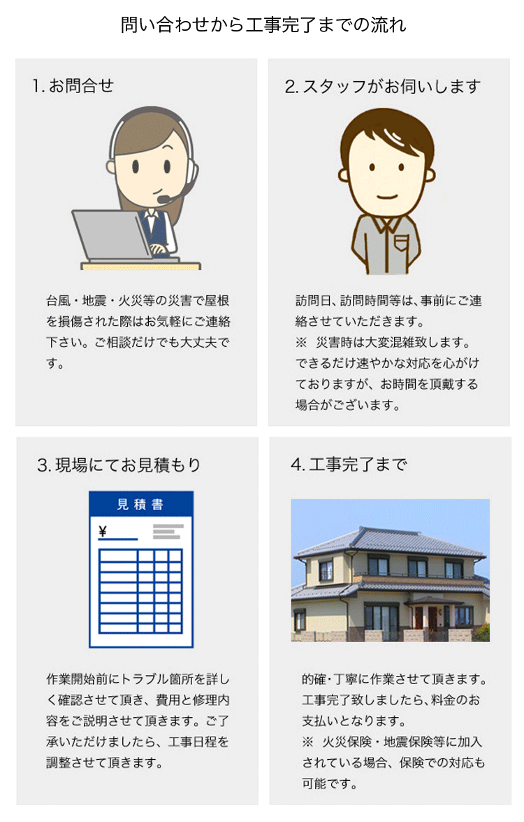滋賀県で災害が発生したときには、滋賀県内の屋根工事店に問い合わせ・工事の依頼が殺到します。結果対応しきれず、被災されて不安になられているお客様を長い間お待たせしてしまうといった事態が、今まで起こり続けてきたことを心苦しく感じておりました。